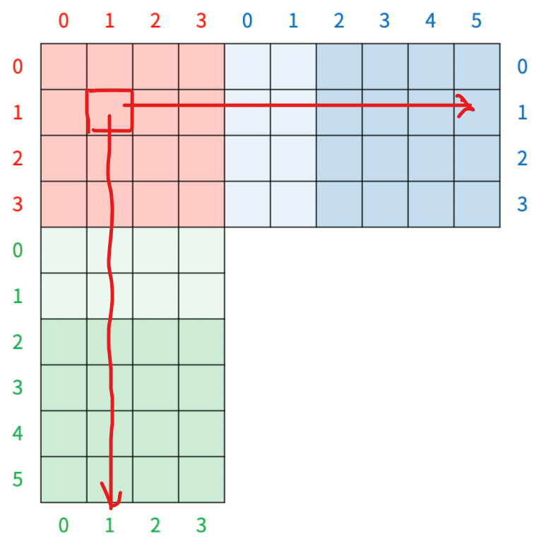2) 조각이 놓여졌을 때 파란보드로 이동하면 행이 그대로일 것이고, 초록보드로 이동하면 열이 그대로일 것이다.